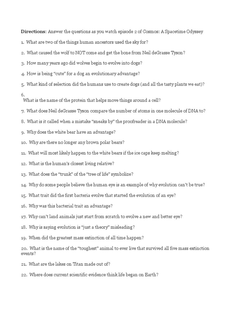 Download File PDF Cosmos Episode 2 Worksheet Answer The Questions As Youanswer the questions as you and numerous ebook collections from fictions to scientific research in any way. How is being cute for a dog an evolutionary advantage. OTHER SETS BY THIS CREATOR.